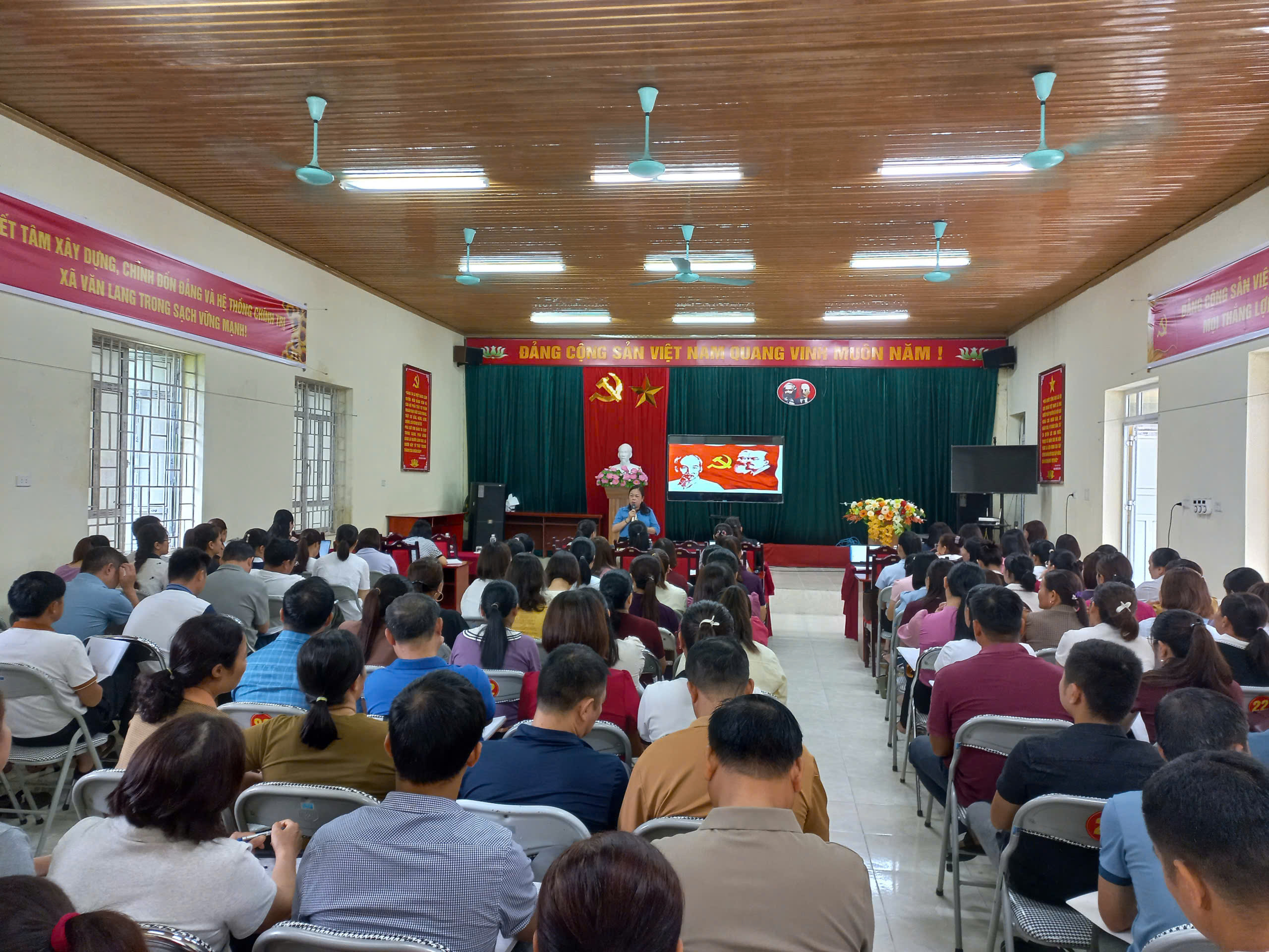Hội nghị công bố các Quyết định của Hội Liên hiệp phụ nữ tỉnh Bắc Kạn về việc thành lập Hội Liên hiệp Phụ nữ xã Văn Lang trên cơ sở sáp nhập Hội Phụ nữ xã Văn Lang, Lương Thượng, Kim Hỷ cũ. Sau sáp nhập Hội Liên hiệp Phụ nữ xã Văn Lang có 19 chi hội với 1.141 hội viên. Quyết định về việc chỉ định Ban Thường vụ 03 đồng chí, Ban Chấp hành với 21 đồng chí. Đồng chí Lê Thị Hiền đượ